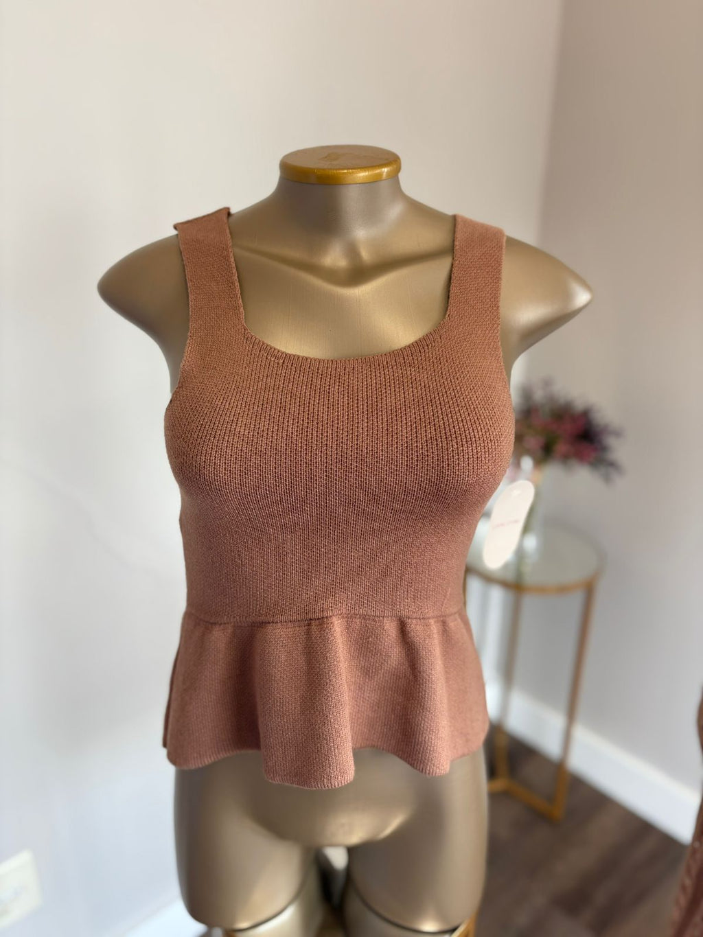 Regata em tricô marrom leve e sofisticada, tamanho unico.